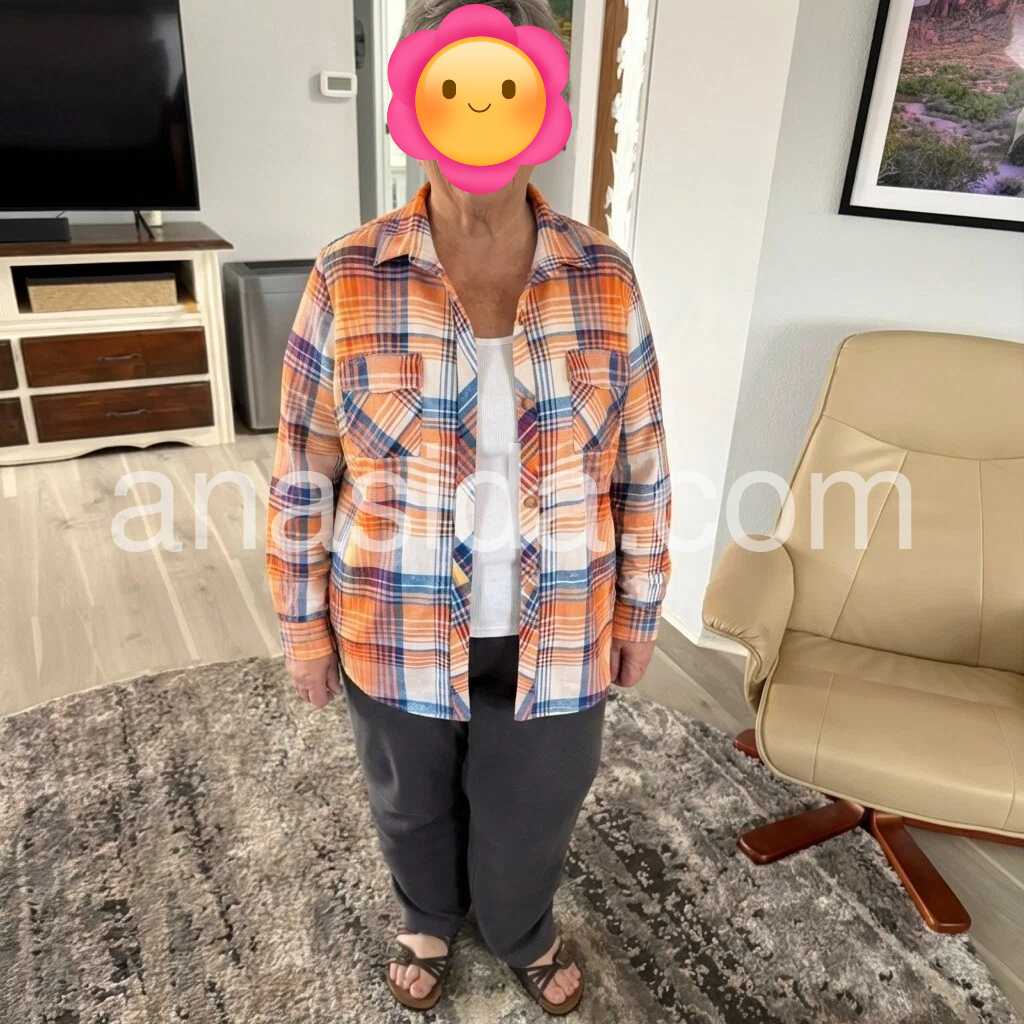 This orange plaid shirt is so cute and versatile! The vibrant colors make it stand out, and the soft fabric is lightweight enough for layering. The button-down design lets me adjust the fit, and the chest pocket is a cute little detail. It pairs perfectly with denim shorts or jeans, and I’ve even worn it tied around my waist for a retro vibe. I’m obsessed with how fun and stylish it is!