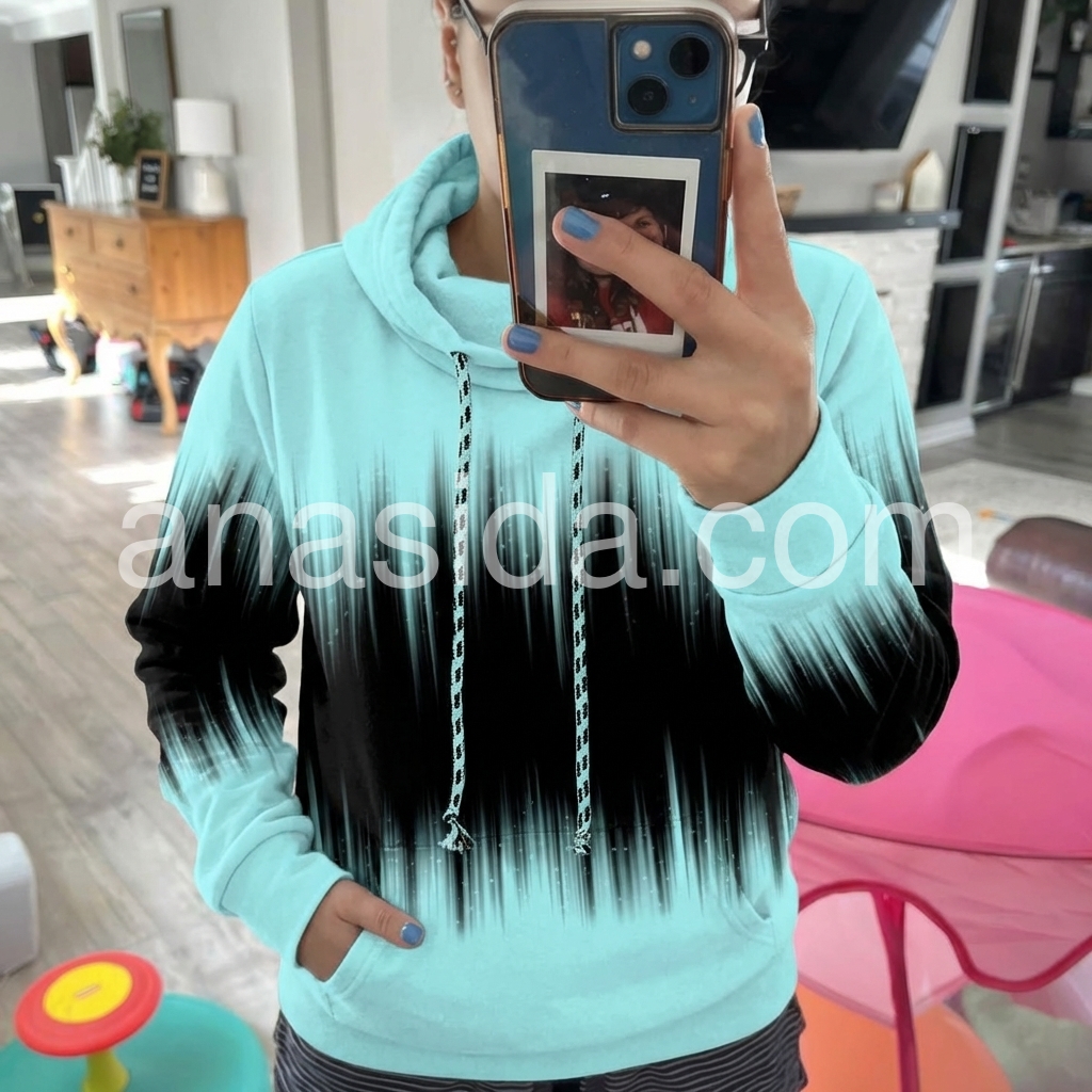 Aqua & Black Ombre Rain Hoodie Drawstring Sweatshirt