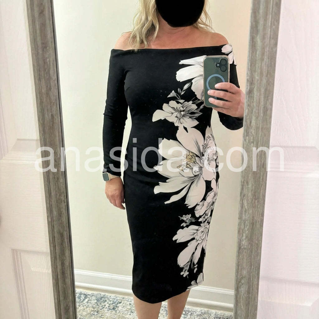 Stylish Black Long Sleeve Midi Dress