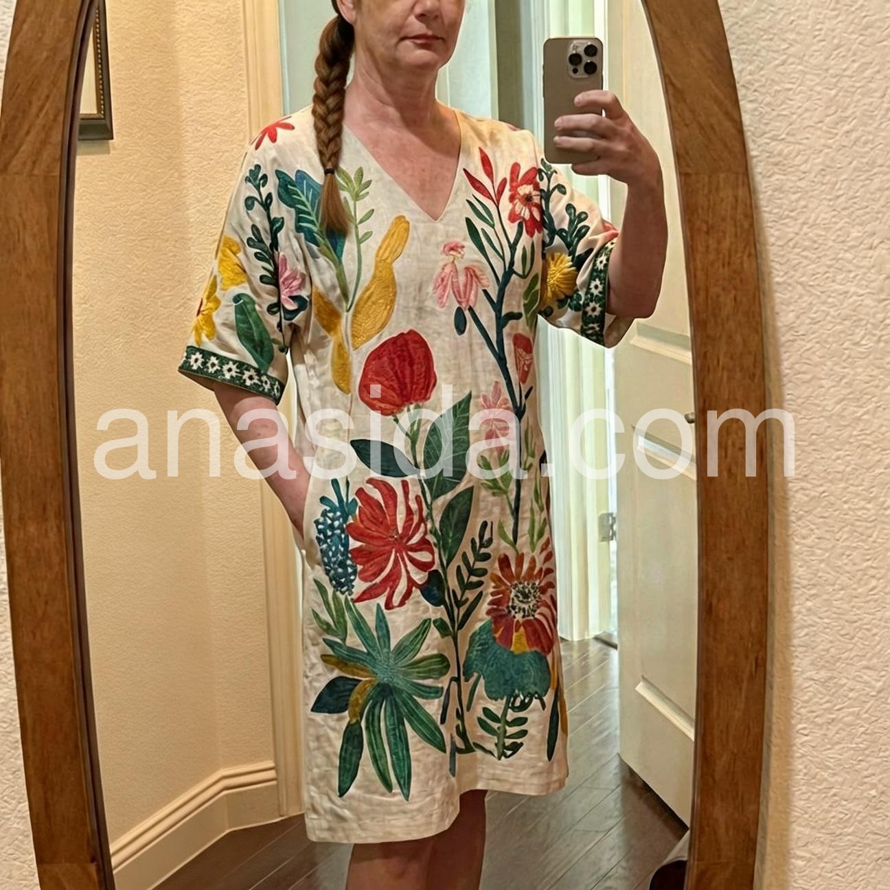 - Neckline: V-neck