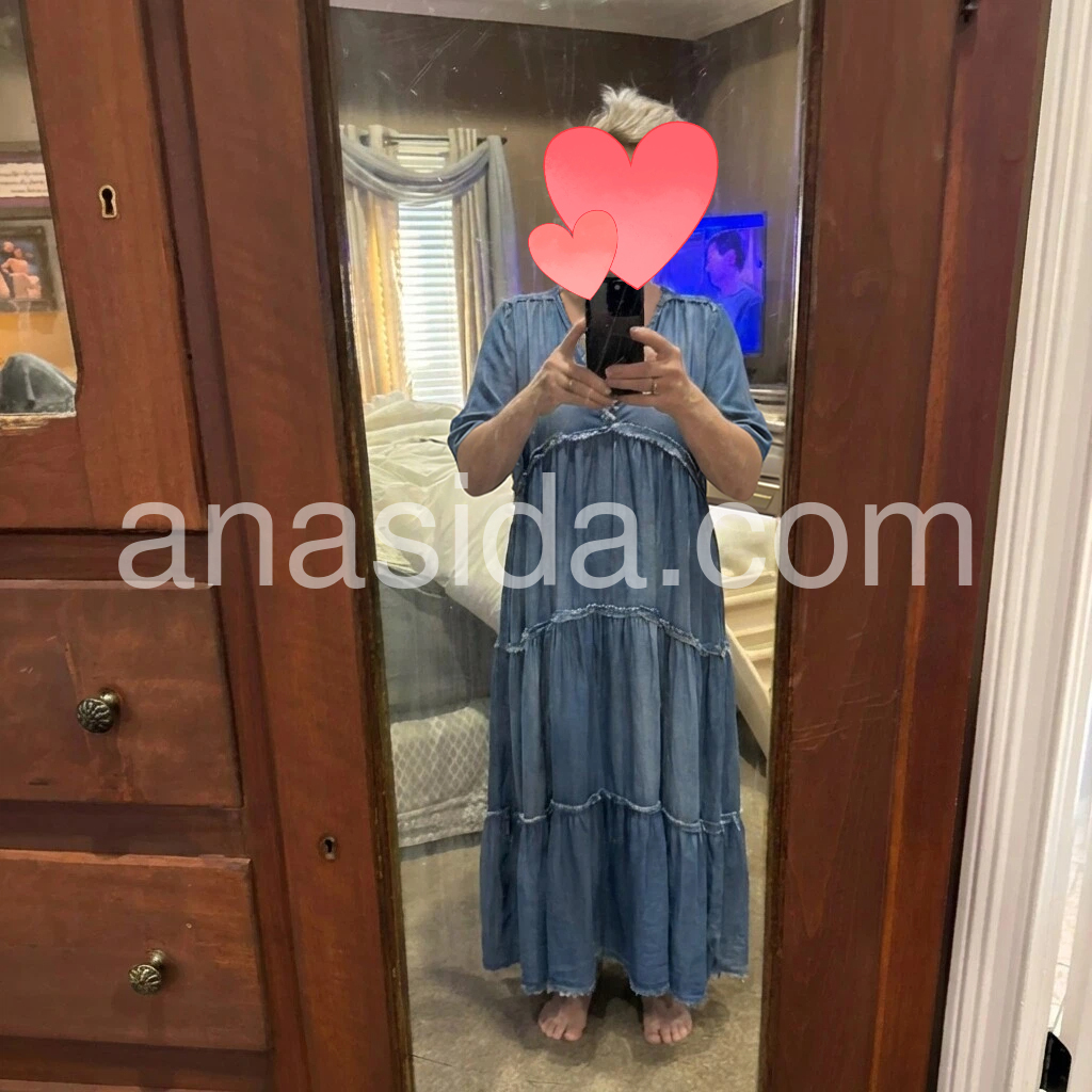 This Blue Denim Plain 3/4 Sleeve Maxi Dress is a must-have for any wardrobe. Its classic design and 3/4 sleeves make it versatile for any occasion. The high-quality denim material ensures durability and comfort, while the plain blue color adds a touch of sophistication. Elevate your style with this timeless piece.